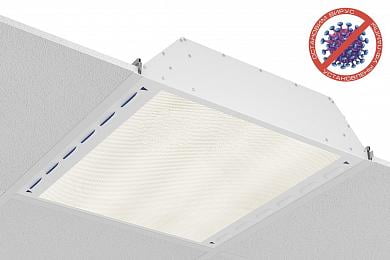 Устройства для обеззараживания воздушной среды совмещенные с офисными светодиодными светильниками разработаны для работы в помещениях с постоянным присутствием людей.