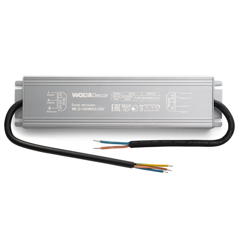 Блок питания WOLTA Decor WLD-150W/02-24V 150Вт 24В IP67 220х52х20мм