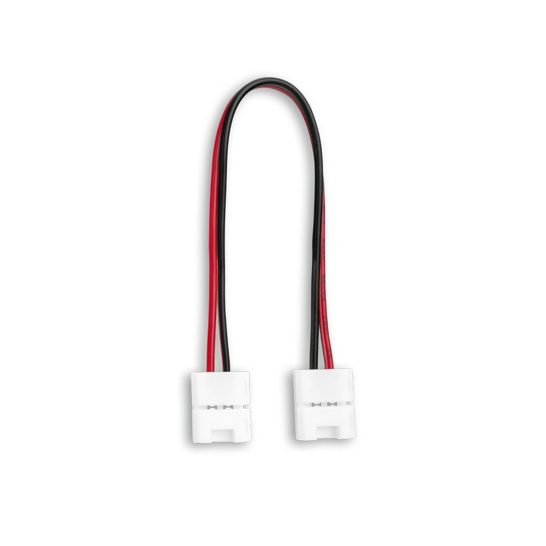 Двойной коннектор с проводом 15см для соединения 2-х отрезков открытых светодиодных одноцветных лент (SMD 2835) шириной 8мм. Материал - пластик. Максимальный допустимый ток 3А, напряжение до 48В.