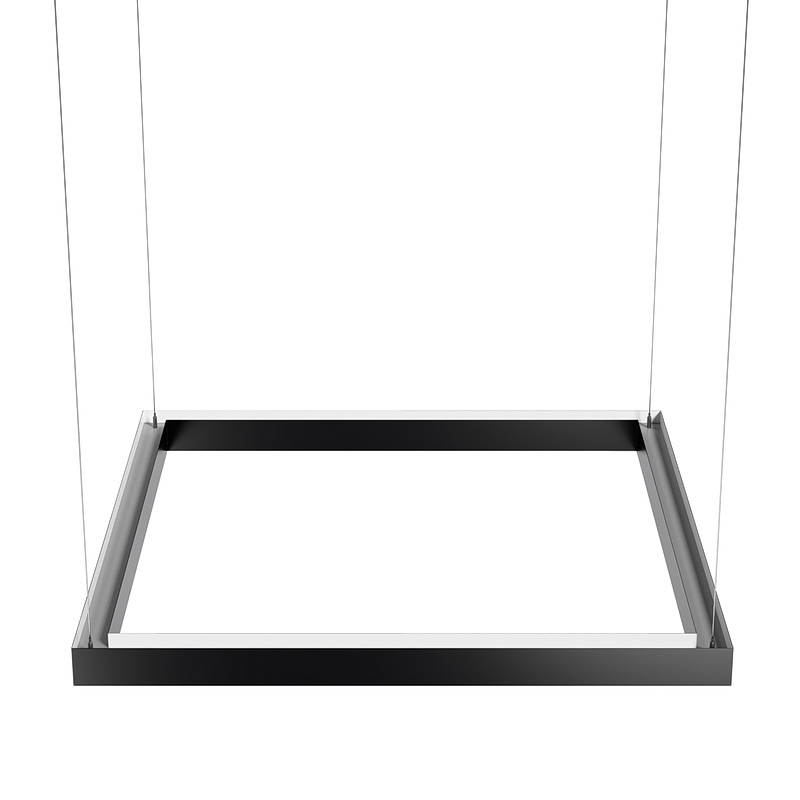 Корпус больших квадратных светильников может быть выполнен в черном и белом цвете. Цветовая температура на выбор: теплый цвет (3000К), нейтральный (4000К) или холодный (6500К). Материал корпуса – металл, размеры на выбор. Вариант монтажа – подвесной. Размеры, форму и мощность можно выбрать, так как модель изготавливается на заказ.