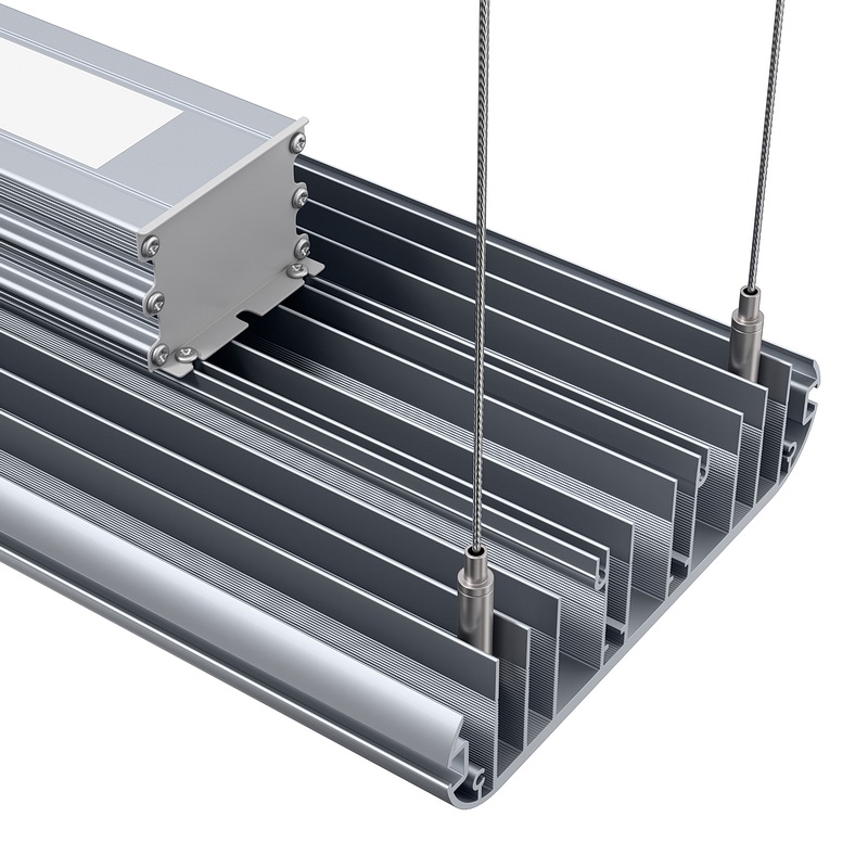 Корпус светильника изготовлен из анодированного алюминия, не подвержен коррозии. Легкое крепление с помощью рым-болтов, возможна замена на тросовые подвесы.