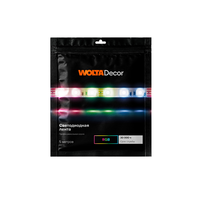 Светодиодная лента WOLTA Decor WLS5050-14,4W/RGB/24H60-01 SMD5050 14,4Вт RGB 24В IP20 60led/m 5000х10х2мм